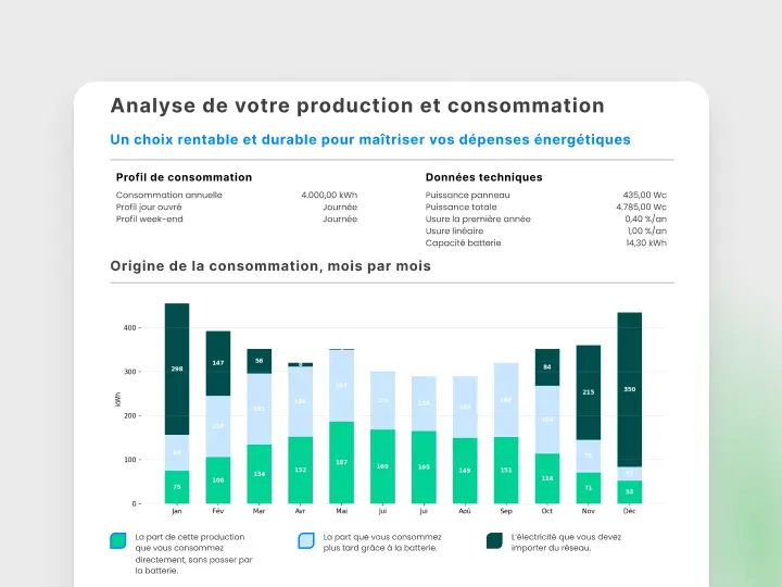 Grâce à des simulations visuelles et pédagogiques, vos clients se projettent facilement. Ils voient ce qu’ils vont produire, économiser et gagner.