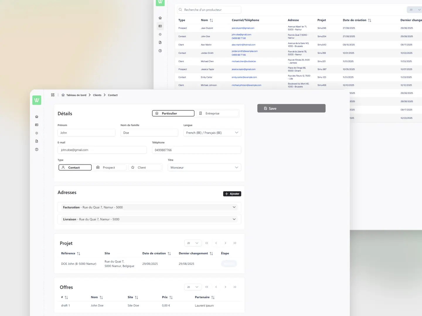 Créez, organisez et retrouvez facilement vos clients et leurs projets.
